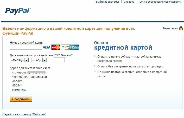 На этом регистрация на пэйпэл закончена. Можно кликнуть на ссылку снизу - Перейти на страницу «Мой счет» и поизучать содержимое (желательно по вопросу прикрепления банковской карты – далее это очень пригодится).